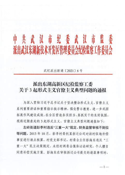派出東湖高新區(qū)紀檢監(jiān)察工委關于3起形式主義官僚主義典型問題的通報